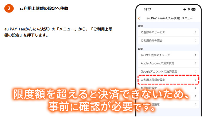 auかんたん決済の利用限度額に注意
