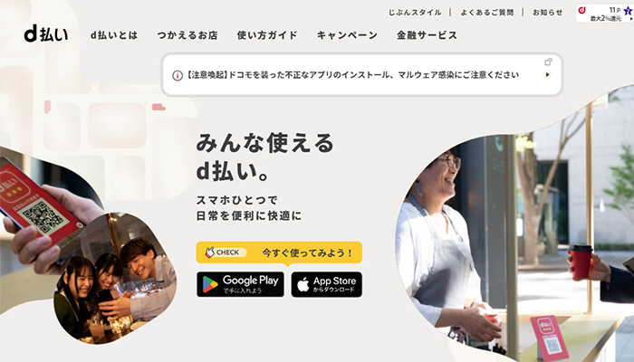 d払いとは、NTTドコモが提供するスマホ決済サービスです。