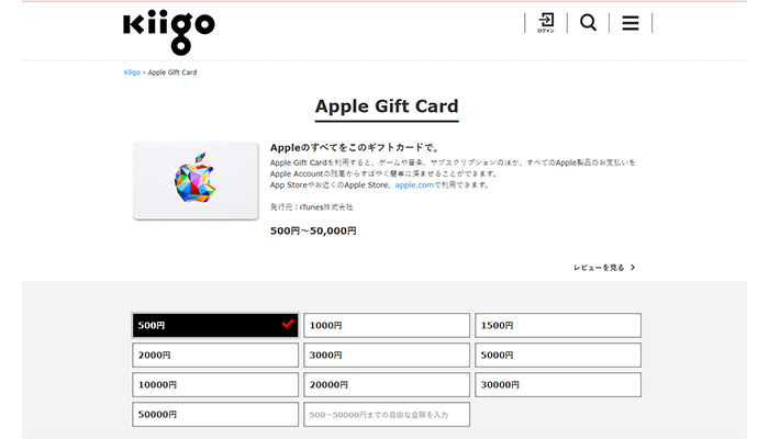 公式が直接販売するAppleギフトカードです。信頼性が最も高く、Eメールタイプで即受け取りできます。