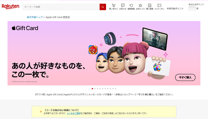 楽天ポイントを利用してギフトカードを購入したい場合に便利です。ただし金額制限がある場合があります。