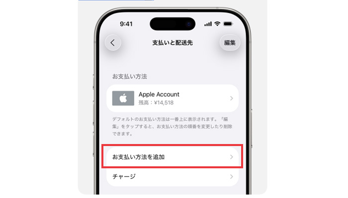 - Step1「設定」→ 一番上のApple ID →「支払いと配送先」を開く