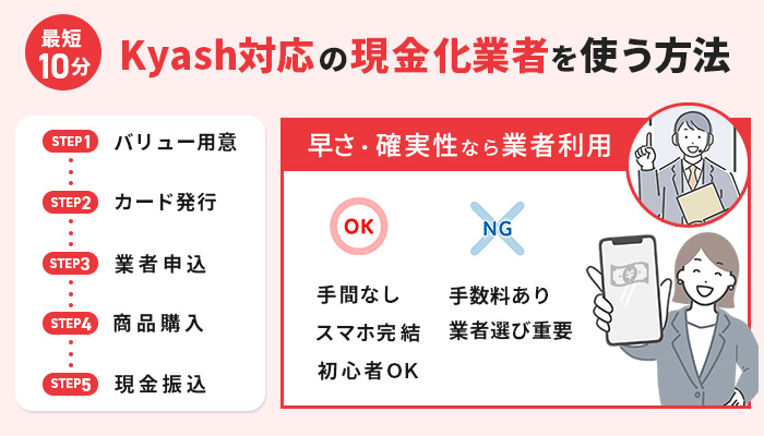 - 【即現金化】Kyash対応の現金化業者を使う方法|手間なしで即日OK