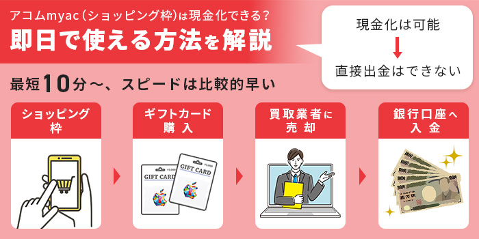 1. アコムmyac(ショッピング枠)は現金化できる?即日で使える方法を解説